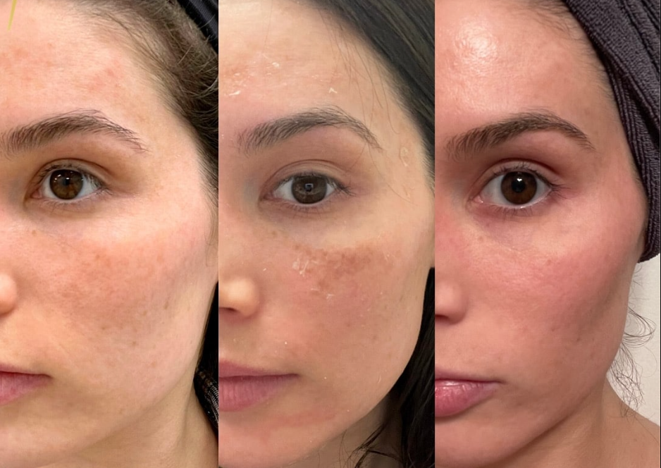 a chemical solution is applied to the face to remove dead